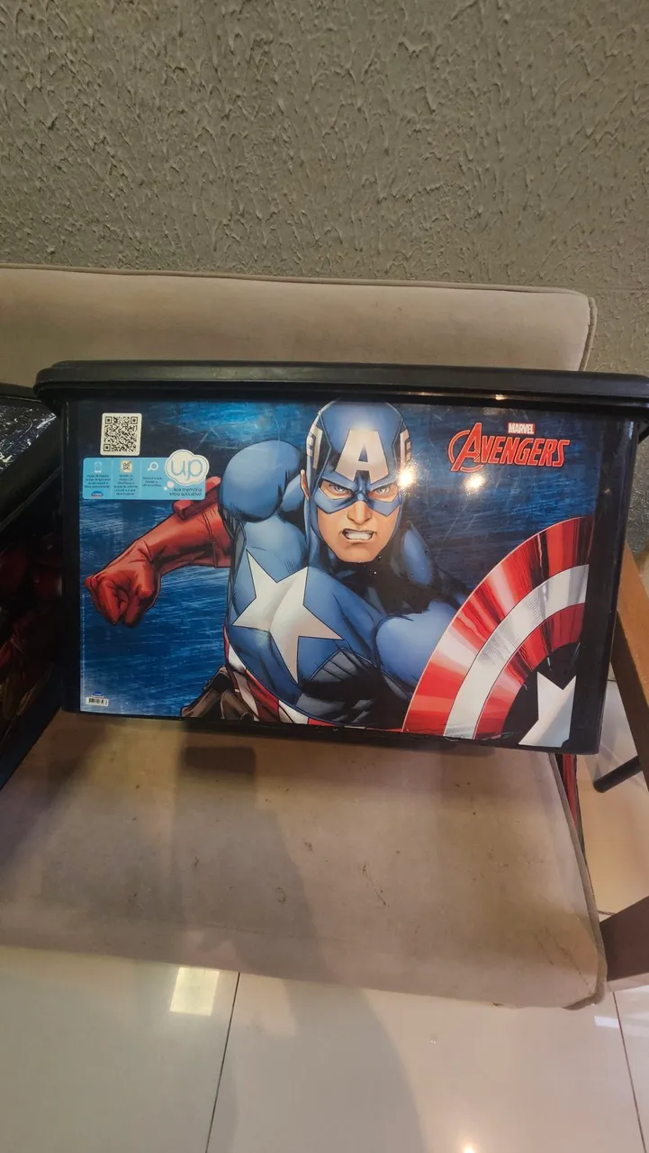 Organize os brinquedos com este baú do Capitão América! Ideal para guardar e manter o quarto das crianças sempre organizado, além de ser um item decorativo e divertido.cada baú R$ 50,00