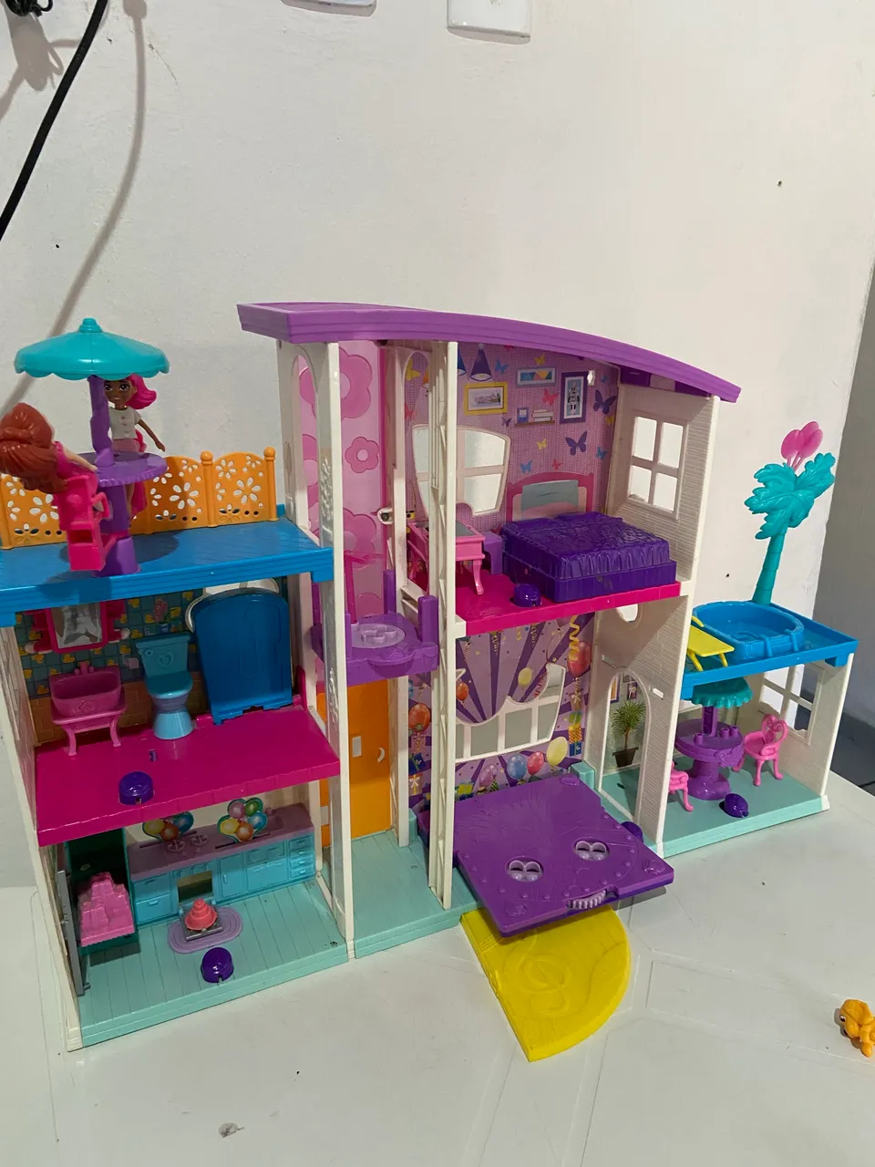 Linda casa de boneca da Polly, perfeita para as crianças soltarem a imaginação e criarem diversas histórias. Com detalhes incríveis e cores vibrantes, a casa oferece um mundo de diversão!