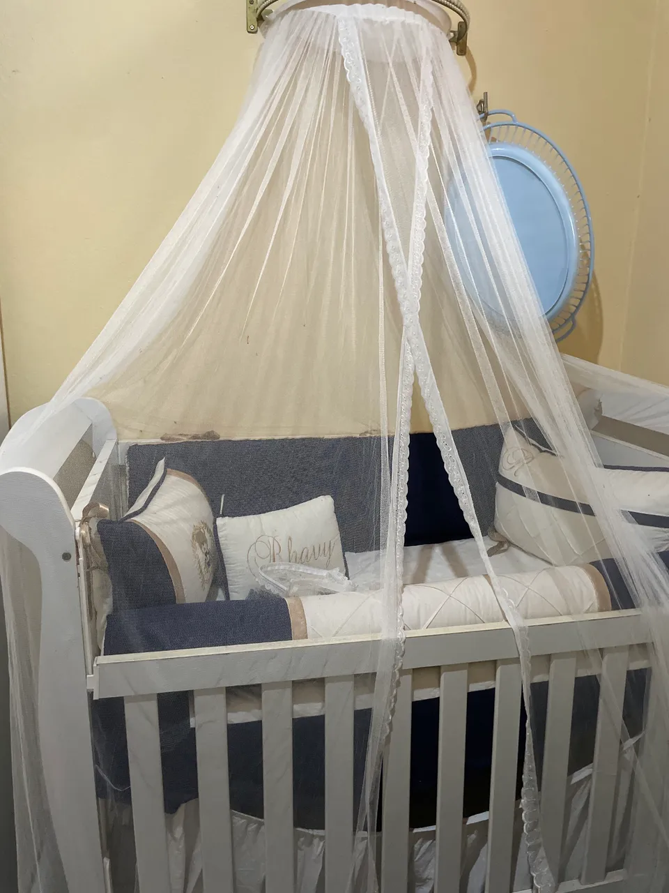 Vendo esse berço com véu,e tenho outro véu tbm por 100 reais está só com esse defeito envio as foto pelo zap 859... ver número