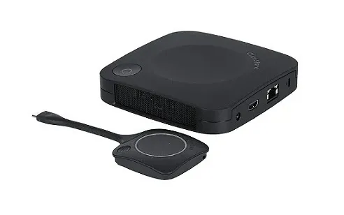 ClickShare CX-20 permite conferências sem fio em pequenos espaços de reunião. Ao entrar na sala de reuniões, o ClickShare o conecta automaticamente aos dispositivos da sala, como câmeras, microfones, alto-falantes, barras de som e monitores.