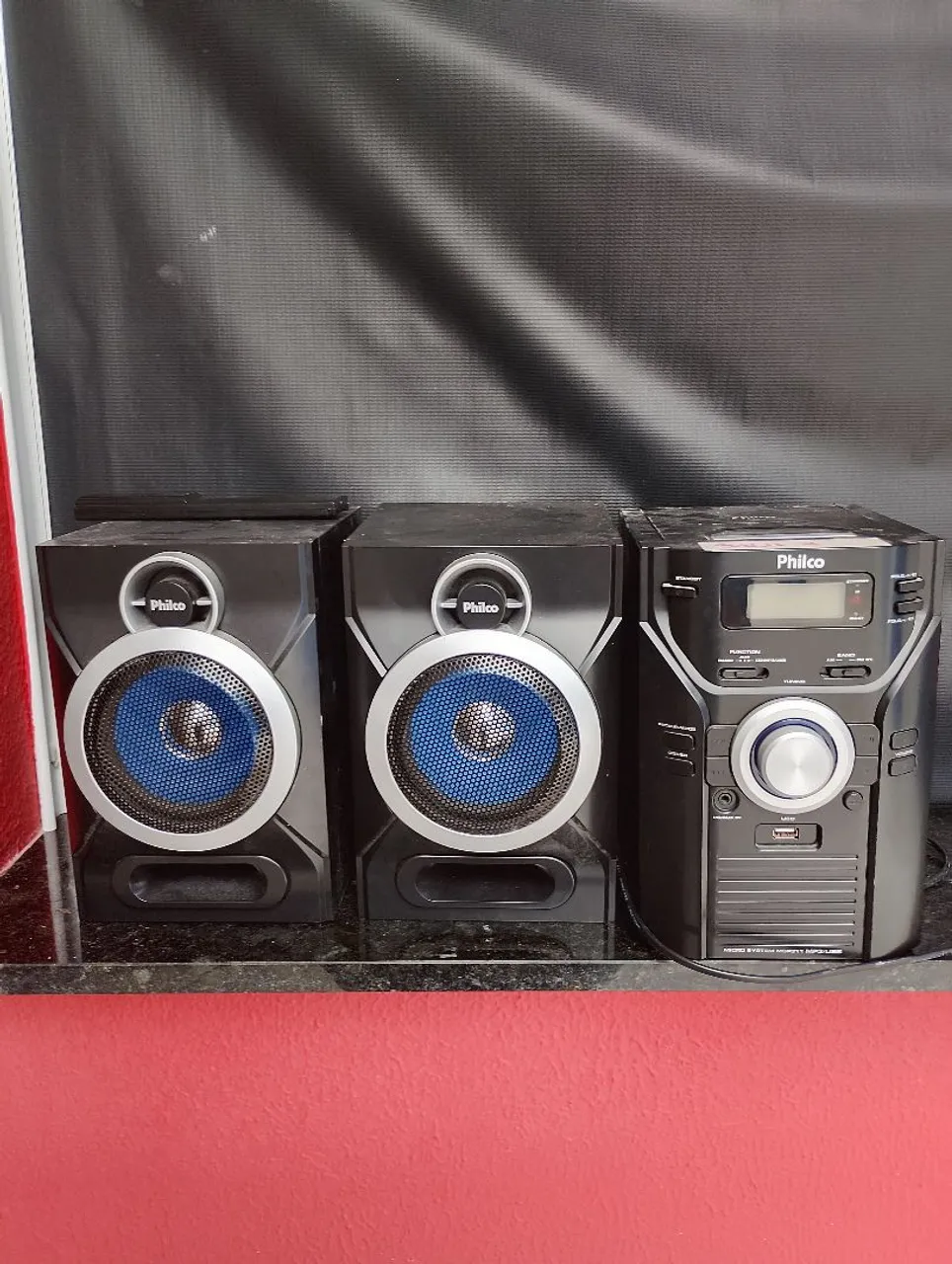 Aparelho de som Philco, com design moderno e som de alta qualidade. Perfeito para animar suas festas e curtir suas músicas favoritas com toda a potência e nitidez.
