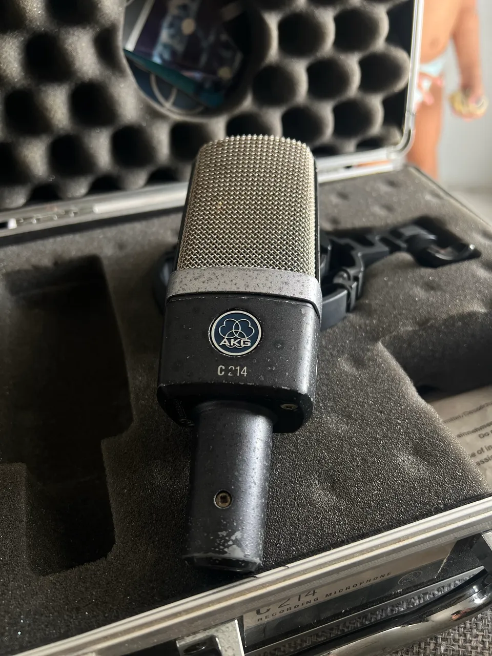 Microfone AKG C 214, perfeito para gravações profissionais e amadoras. Captura áudio com clareza e precisão, ideal para estúdios e uso em casa. Qualidade e desempenho excepcionais em um único microfone.