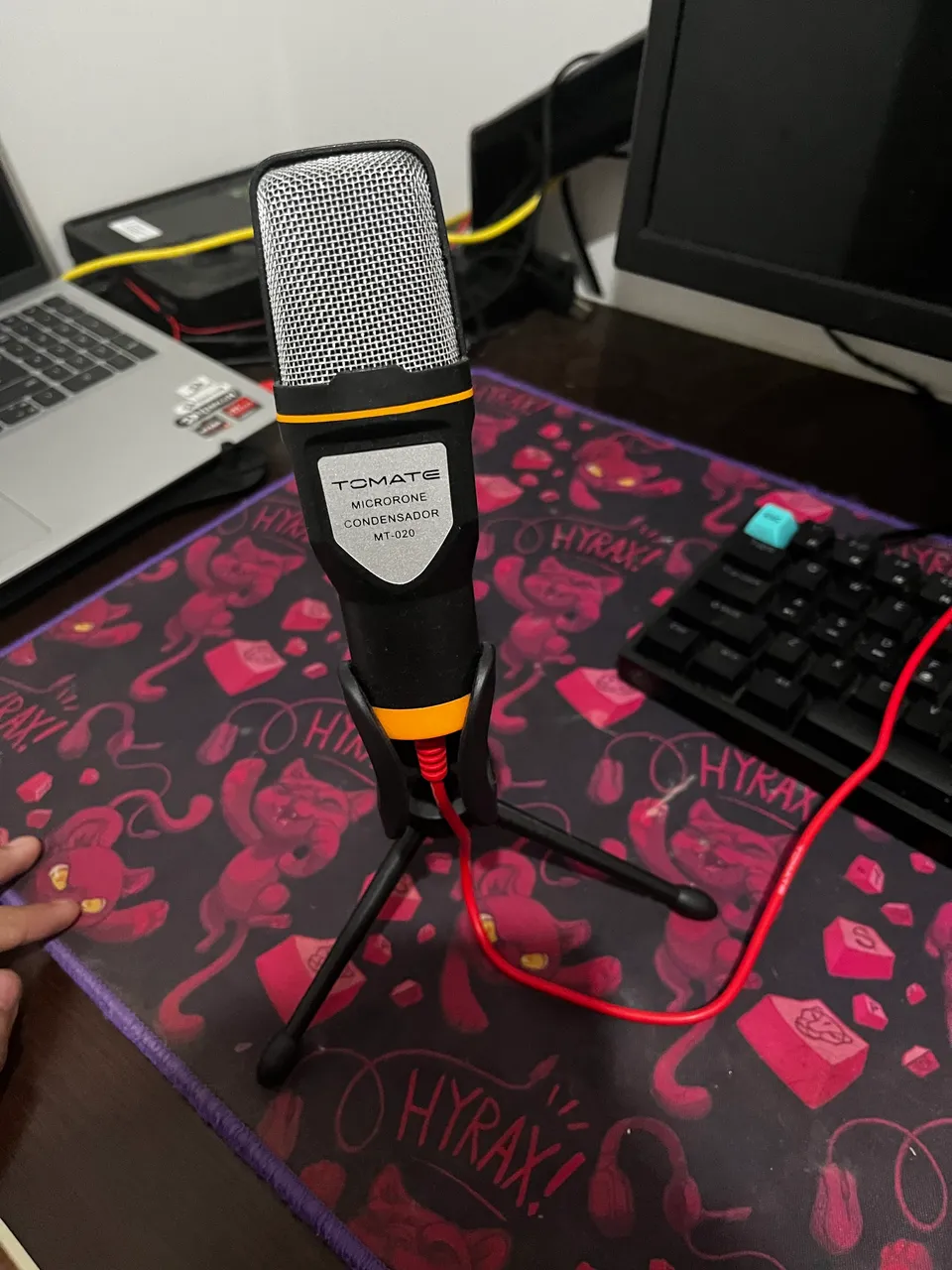 Vendo microfone condensador Tomate MT-020 em ótimo estado, ideal para stream, lives, gravações, aulas online e chamadas.