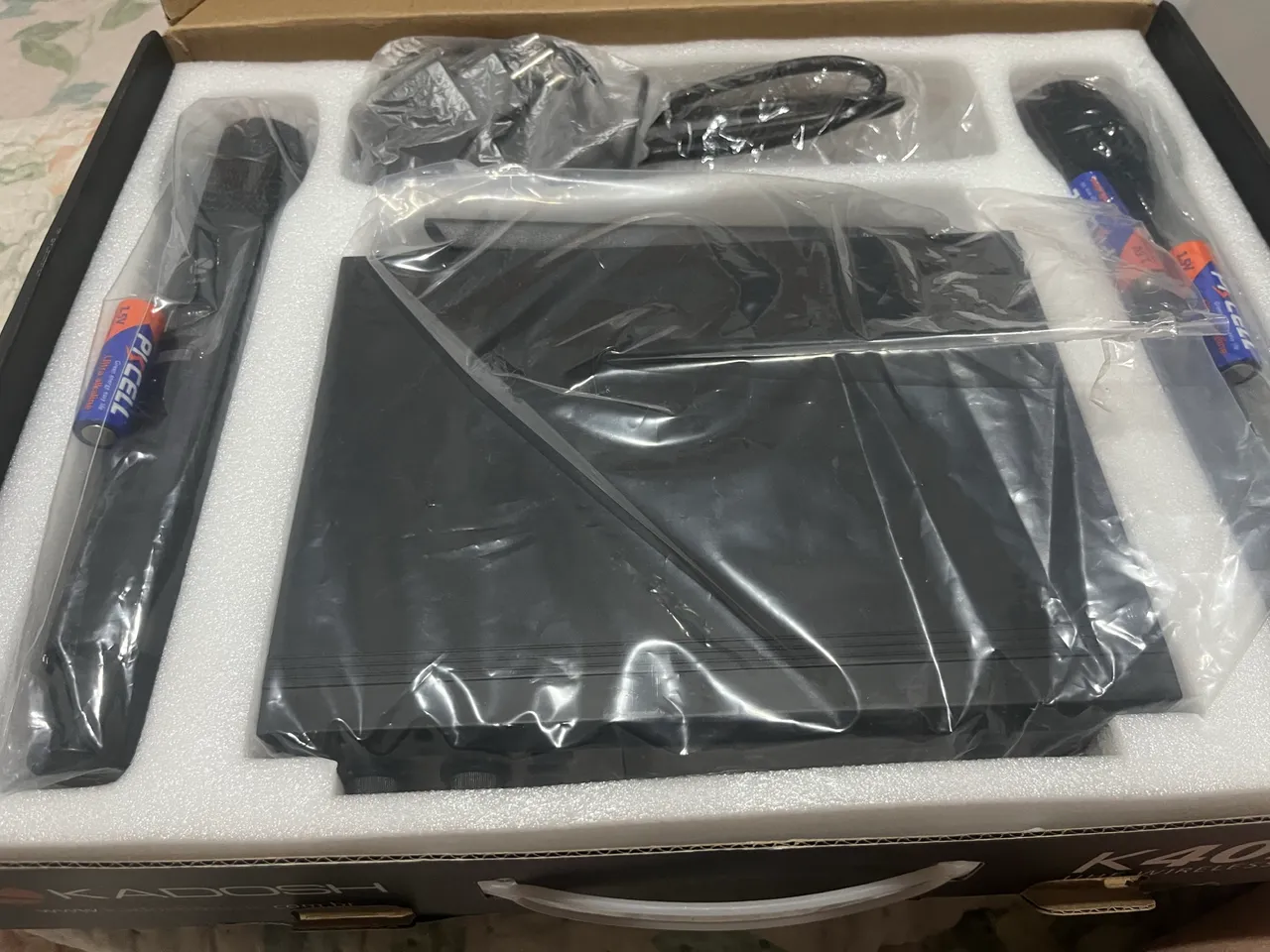Microfones sem fio Kadosh, qualidade sonora excepcional e liberdade de movimento para suas apresentações ou gravações. Desfrute de um som nítido e sem interferências. Usado somente duas vezes por isso coloquei novo. Vendendo pq preciso pagar um cartão . Aceito cartão juros por conta do comprador .