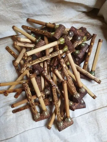 Kuripe giratório para aplicação de rapé indígena. Feito artesanalmente pelas comunidades indígenas da Amazônia.