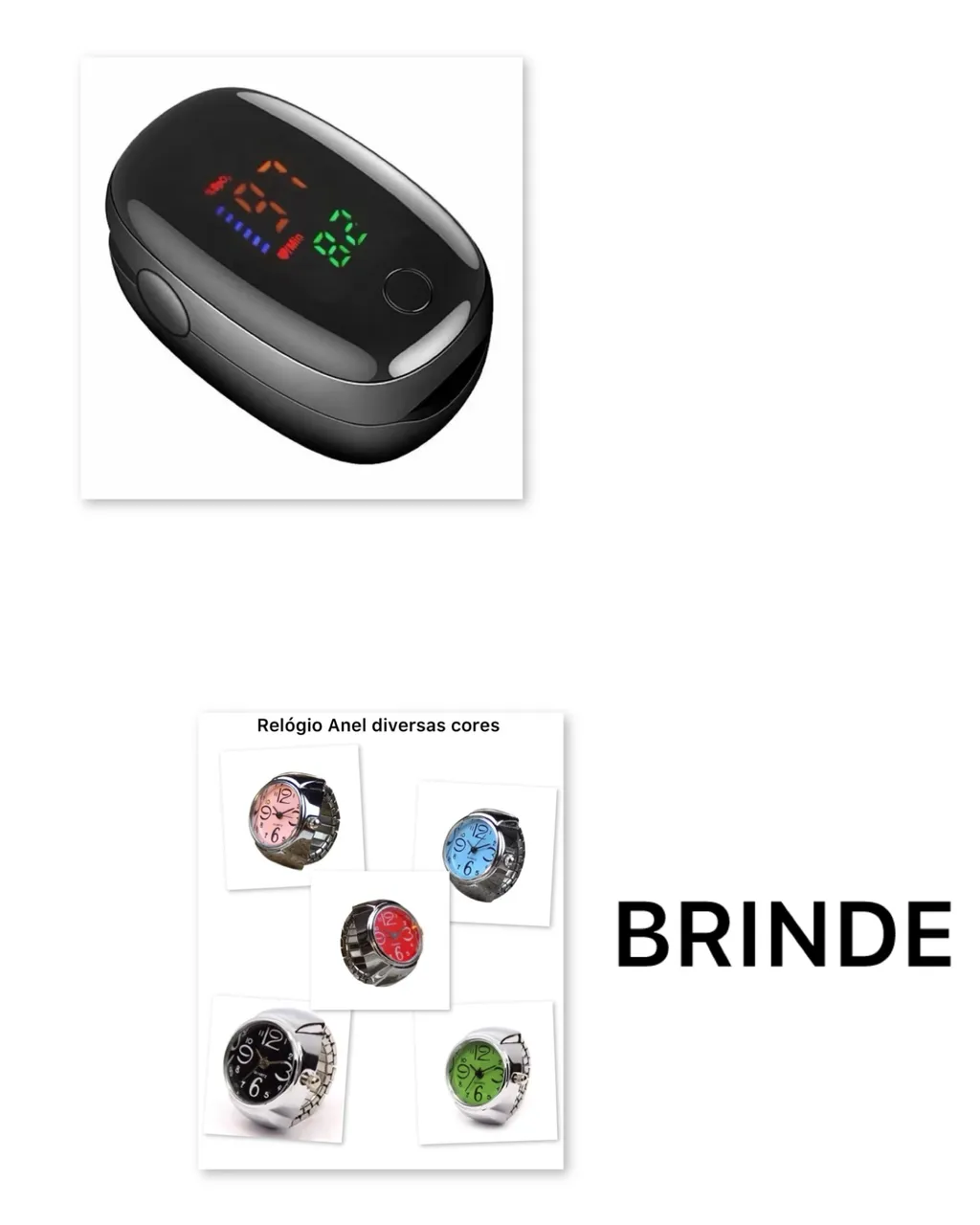 Na compra de um oxímetro preto digital com pilhas e cordão você levará de brinde um lindo relógio anel!