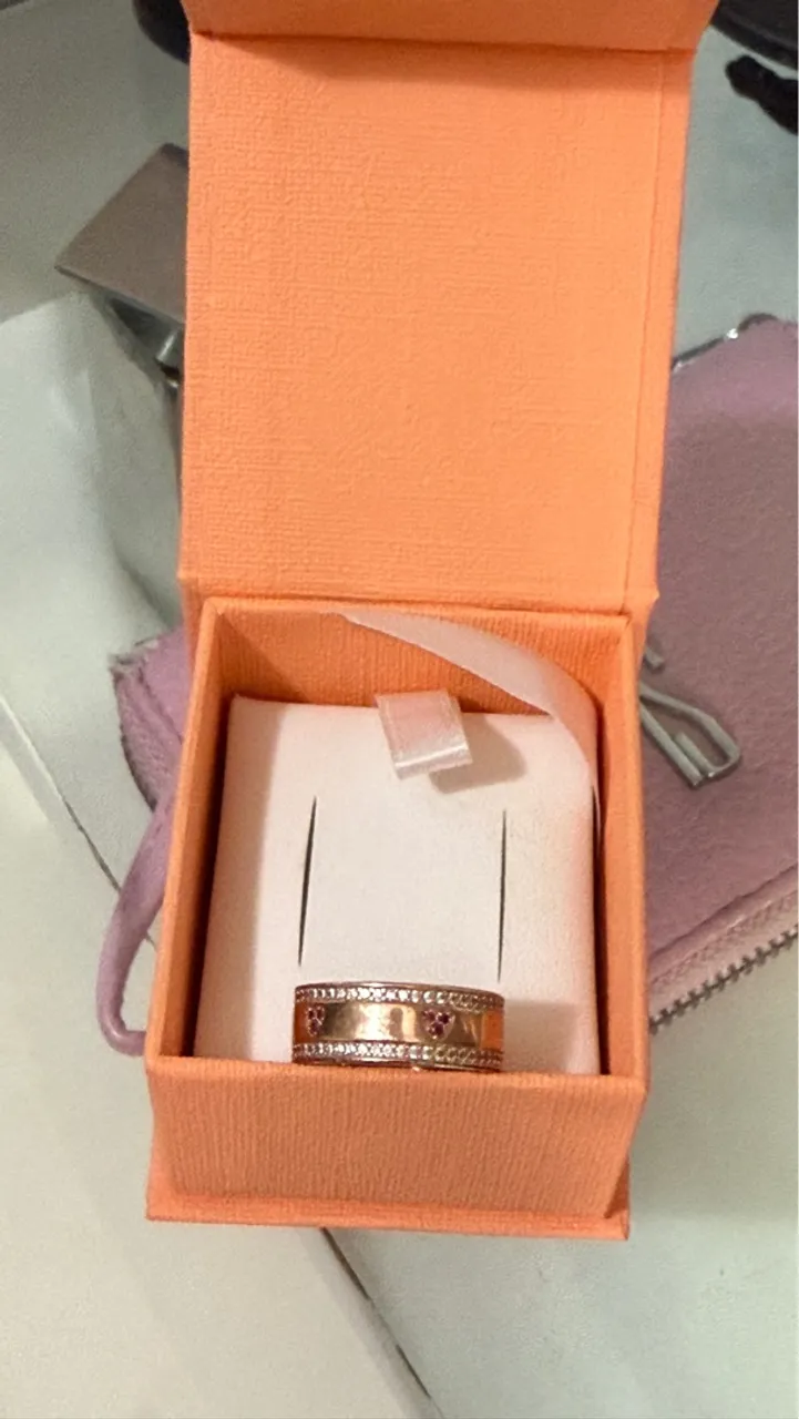 Anel Life Love Locker Coração em Liga Rosé com Banho de Ouro Rosé 18k e Pedras Rosas e Incolores Numeração 14