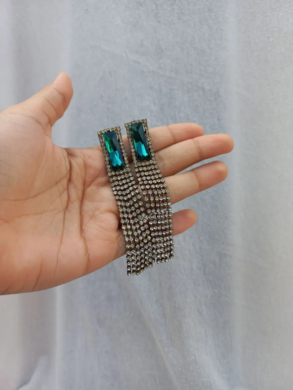Brincos elegantes com detalhes em strass e pedras verdes. Perfeitos para adicionar um toque de brilho ao seu visual!