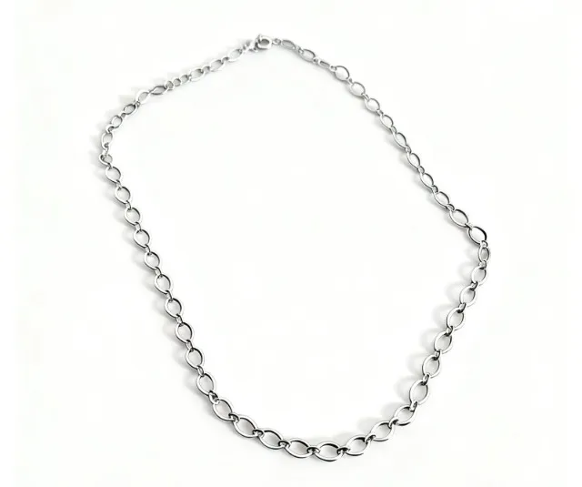 Adicione um toque de sofisticação geométrica ao seu look com este Colar Longo de Elos Ovais. Com um design clean e contemporâneo, esta peça se destaca pela leveza e pelo brilho intenso dos elos polidos, sendo a escolha perfeita para quem busca um acessório marcante e moderno.