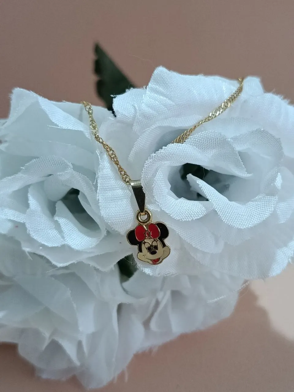 Linda corrente infantil da Minnie, perfeita para as pequenas fãs da personagem mais charmosa da Disney. Um acessório delicado e cheio de estilo, ideal para completar o visual das crianças com um toque de magia e diversão.