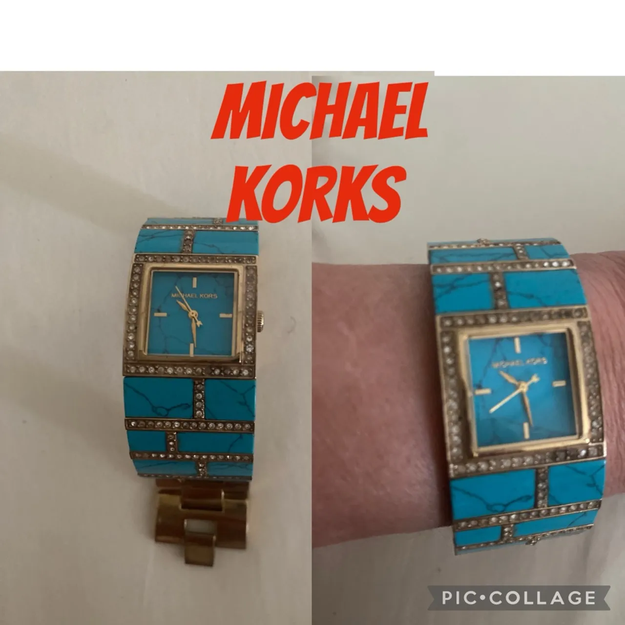 Vendo / troco Relógio Michael Kors feminino, com pulseira em tom turquesa e detalhes em dourado. Perfeito para mulheres que buscam estilo e elegância. Usado e está faltando algumas pedrinhas