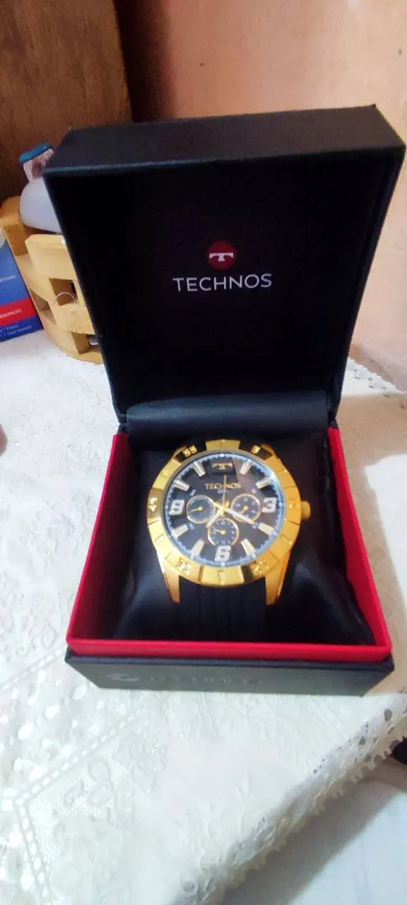 Relógio Technos dourado, design sofisticado e elegante para complementar seu estilo. Um acessório que combina com qualquer ocasião. Semi-novo ainda na caixa! Aceito cartão !