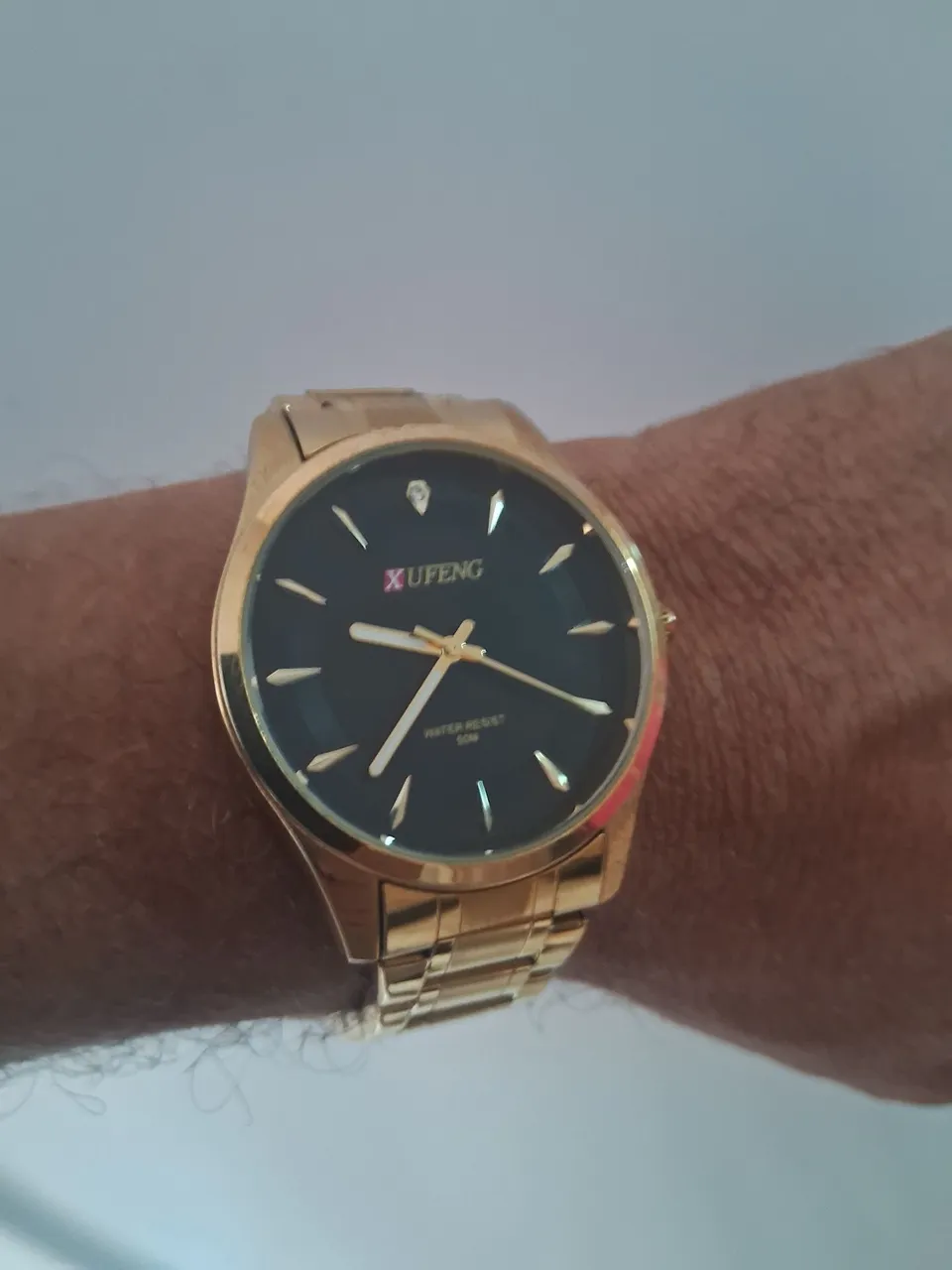 Relógio Xufeng dourado com design elegante e moderno. Perfeito para complementar seu estilo com sofisticação e precisão.