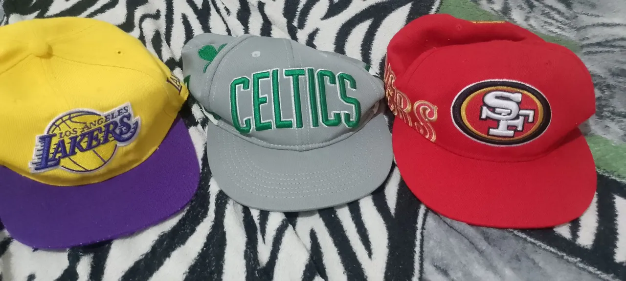 3 bonés semi novos Dois de basquete Lakers e celtics Um de futebol americano San Francisco 89 100 reais os 3