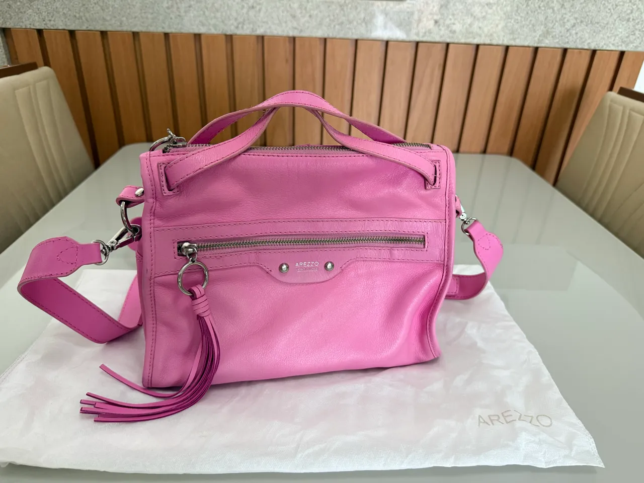 Linda bolsa Arezzo, perfeita para completar seu look com elegância e estilo. Design moderno e acabamento impecável, ideal para diversas ocasiões. Uma peça que combina praticidade e sofisticação!