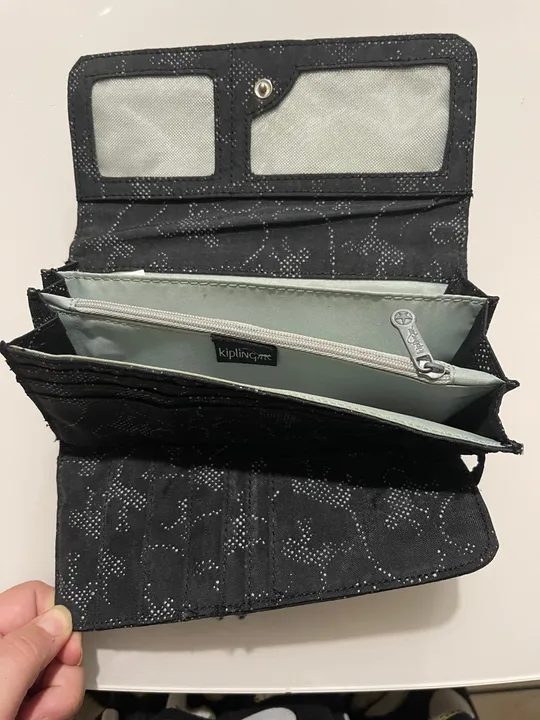 Bolsa Kipling feminina, na cor preta com estampa discreta de estrelas. Ideal para o dia a dia, com design moderno e funcional. Possui vários compartimentos para organizar seus pertences. Em ótimo estado de conservação.