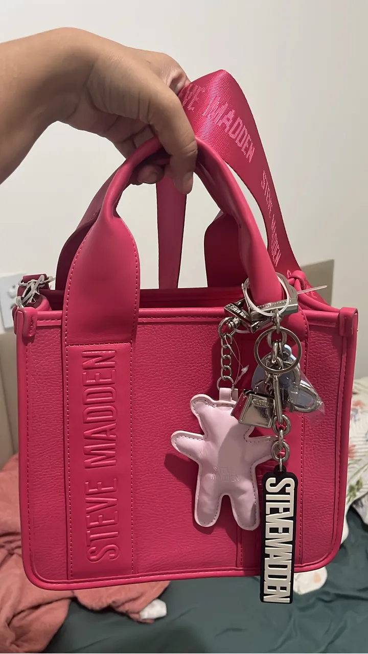 Linda bolsa Steve Madden original, perfeita para quem busca estilo e praticidade. Design moderno e cores vibrantes que combinam com qualquer look. Acompanha chaveiro exclusivo da marca.