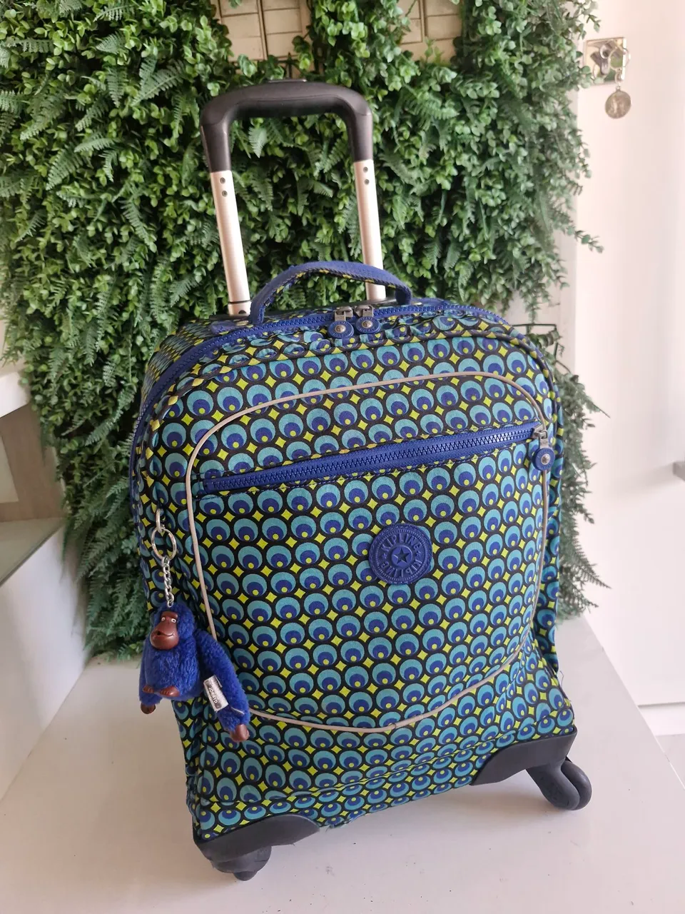 Mala kipling c 4 rodinhas e detalhes AZUL. Perfeita para o ambiente escolar e ou pequenas VIAGENS. Acompanha macaquinho