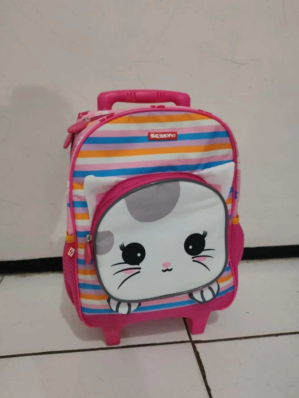 Mochila de rodinhas e lancheira infantil.