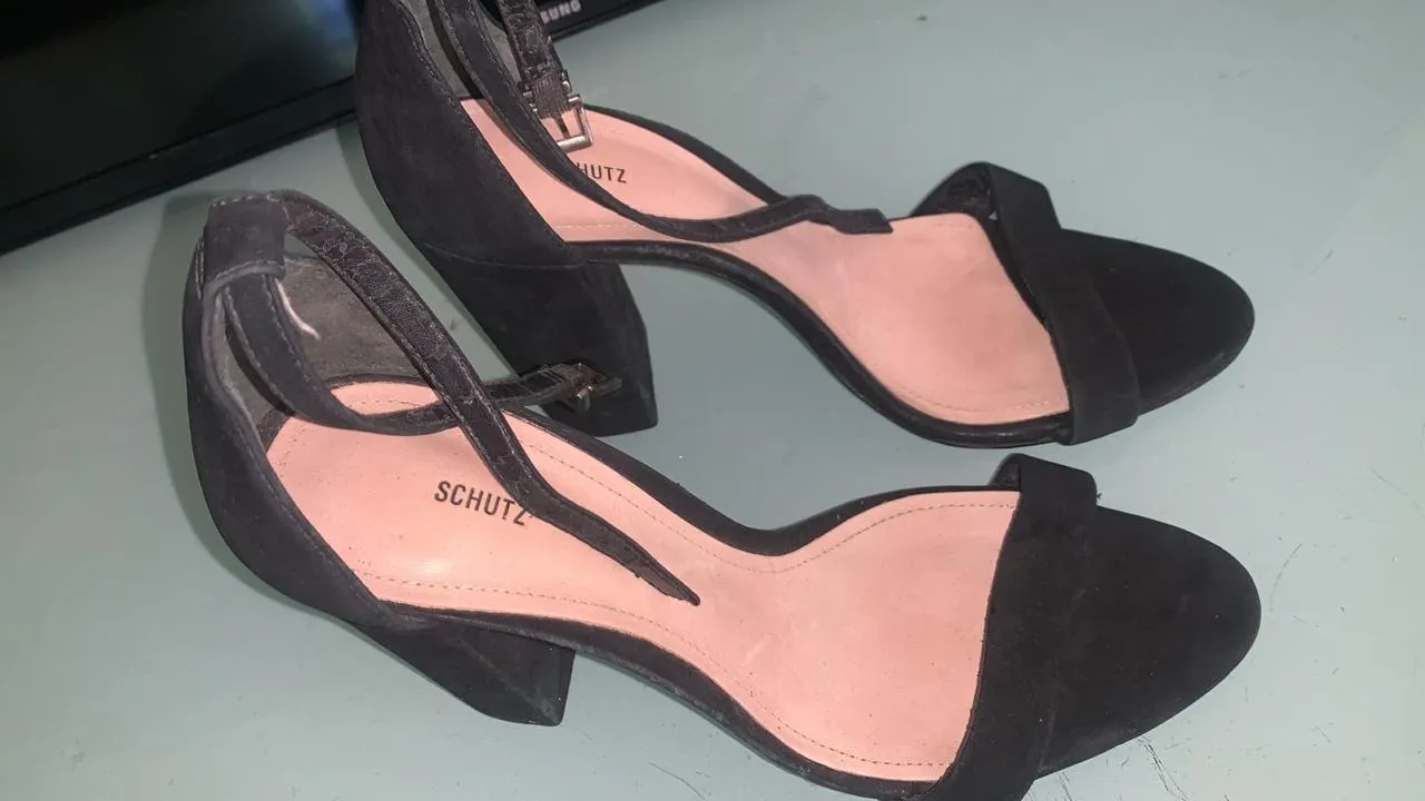 Sandália Schütz, um clássico que nunca sai de moda. O salto confere elegância e o design atemporal garante que você esteja sempre na moda.falta a virola, TAM 39