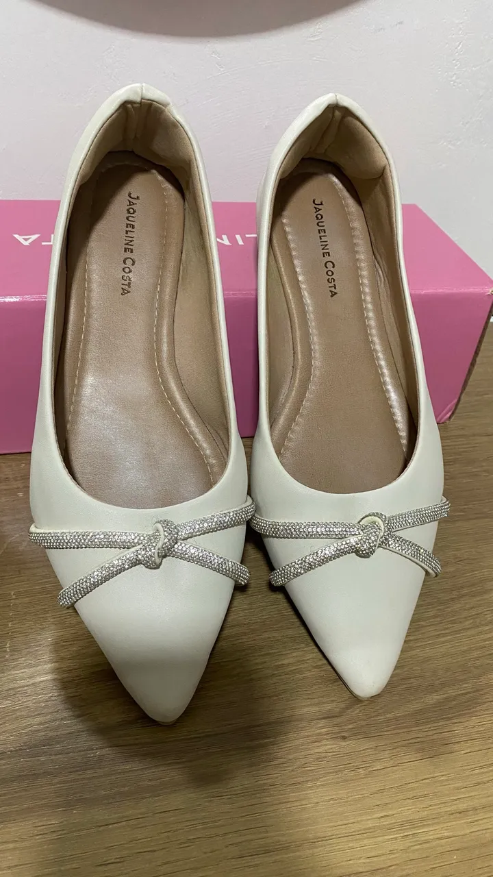 Sapatilha branca, detalhes em brilho. Tamanho: 37
