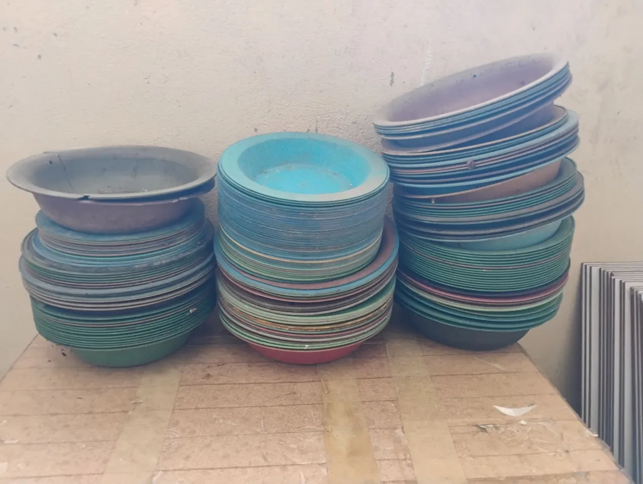 Bacia usadas para vender frutas/verduras na feira. 151 bacias, estão em bom estado, só estão sujas porque ficaram guardadas sem serem utilizadas.