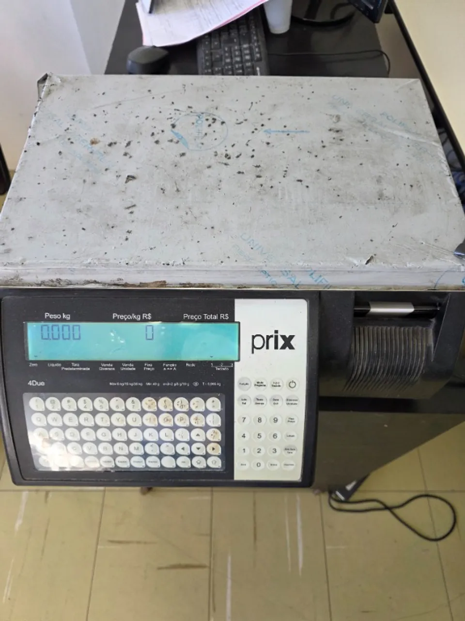 Balança muito nova (ainda no plástico, a área de pesagem). Tudo funcionando perfeitamente (todos os displays sem detalhes). A impressora também está em perfeito estado. Produto sem nenhuma observação.