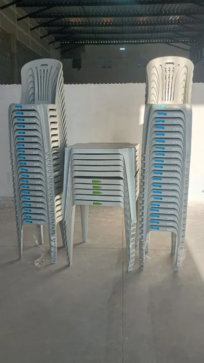 Conjunto de cadeiras de plástico empilháveis, ideais para restaurantes, lanchonetes, bares e outros estabelecimentos comerciais. As cadeiras são resistentes e fáceis de limpar, proporcionando conforto e praticidade para seus clientes. Aproveite a oportunidade e adquira já!