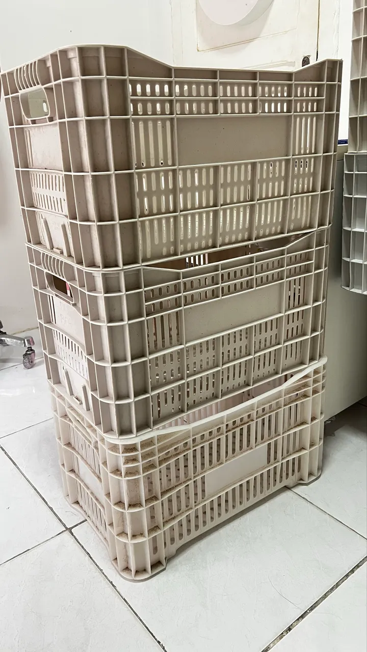 Caixas plásticas vazadas, usadas, em bom estado de conservação.