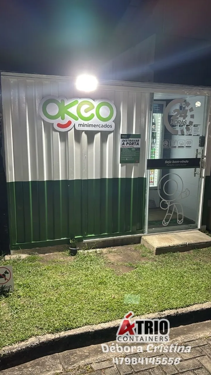 Container para mini mercado, perfeito para vendas 24 horas, com design moderno e eficiente.