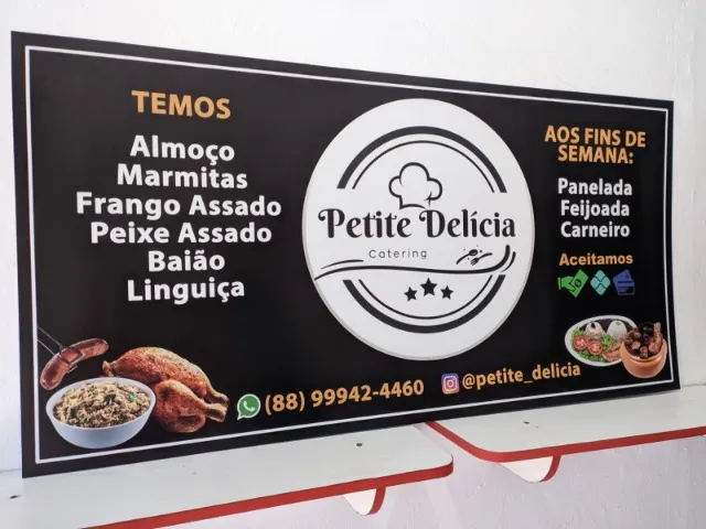 FACHADAS PARA LOJAS / COMÉRCIOS / SERVIÇOS São feitas em PVC 2mm, ideal para ambientes internos e externos, resistentes à sol e chuva, bem leve e versátil e de fácil instalação. O formato pode ser quadrado, retangular ou redondo. TAMANHOS E VALORES (Placas Redondas): 40cm: R$70,00 50cm: R$100,00 60cm: R$130,00 70cm: R$160,00 80cm: R$190,00 90cm: R$230,00 1m: R$270,00 TAMANHOS E VALORES (Placas Retangulares): 40cm x 60cm: R$80,00 50cm x 70cm: R$110,00 50cm x 100cm: R$140,00 60cm x 90cm: R$150,00 60cm x 120cm: R$190,00 80cm x 120cm: R$240,00 OBS: Não fazemos instalação. Prazo de produção de até 5 dias úteis. Retirada dos produtos: LOJA OBYDOS - Rua Coronel Joaquim Franklin, 485, Bairro Antônio Bezerra (Não fazemos entrega). Encomendas através do WhatsApp: (85)... ver número Nosso perfil no Instagram: @lojaobydos Atendimento de segunda à sexta das 9:30h às 12:00h e 15:30h às 19:00h. Aceitamos cartões de crédito e débito e transferência via Pix.