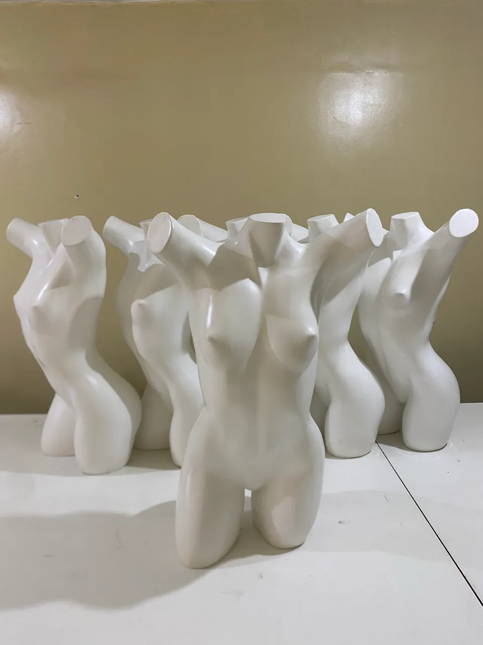 Manequins de meia coxa ideais para exposição de roupas, proporcionando um toque sofisticado e elegante para sua loja. Perfeitos para vitrines e otimização do espaço.