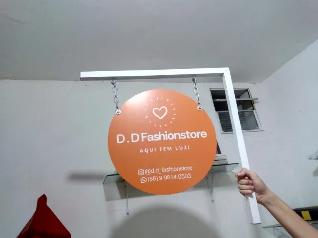 Valor 180,00 Placa redonda ou quadrada em PVC tamanho 40 cm x 40 cm (imagem Frente e verso) + Suporte em Alumínio tamanho 60 cm x 60 cm. Acompanha Buchas, Parafusos, correntes, arruelas e porcas. (Trabalhamos apenas com este tamanho) Tanto a placa como o suporte resistem bem a sol e chuva. Whatsapp: 9964... ver número