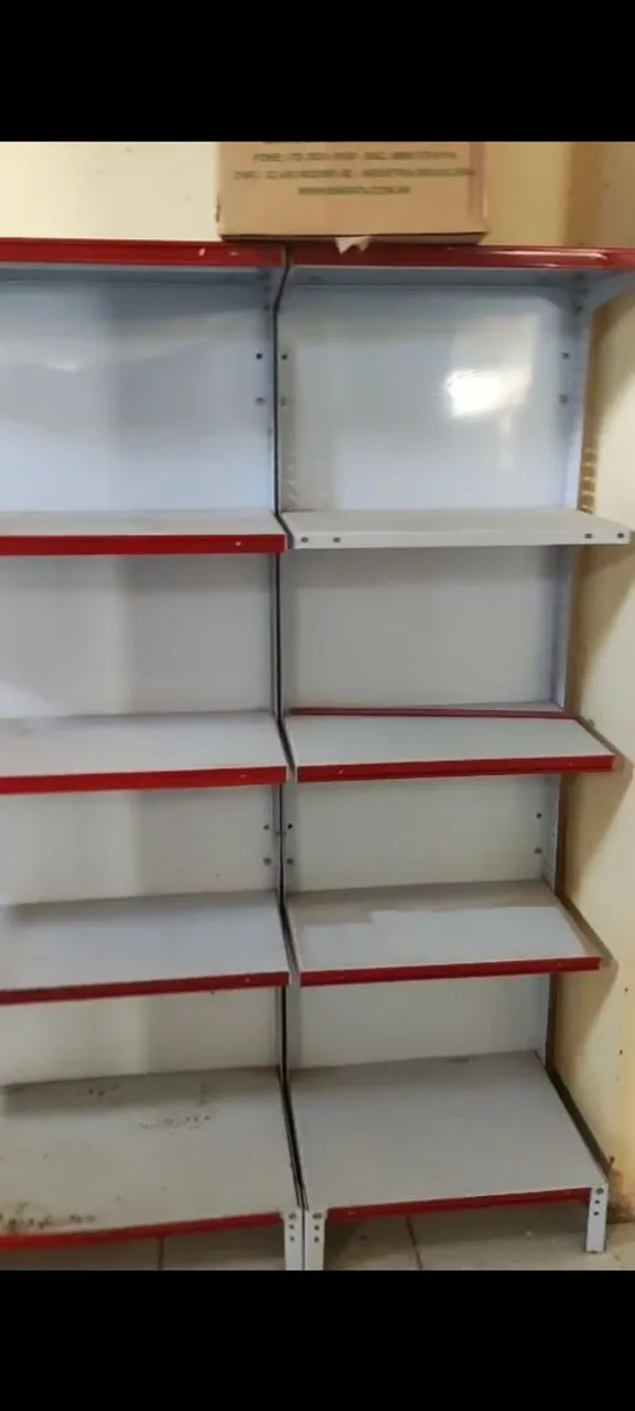 Prateleira de metal ideal para organizar e expor seus produtos no comércio. Design moderno e resistente, perfeita para otimizar o espaço e destacar seus itens.