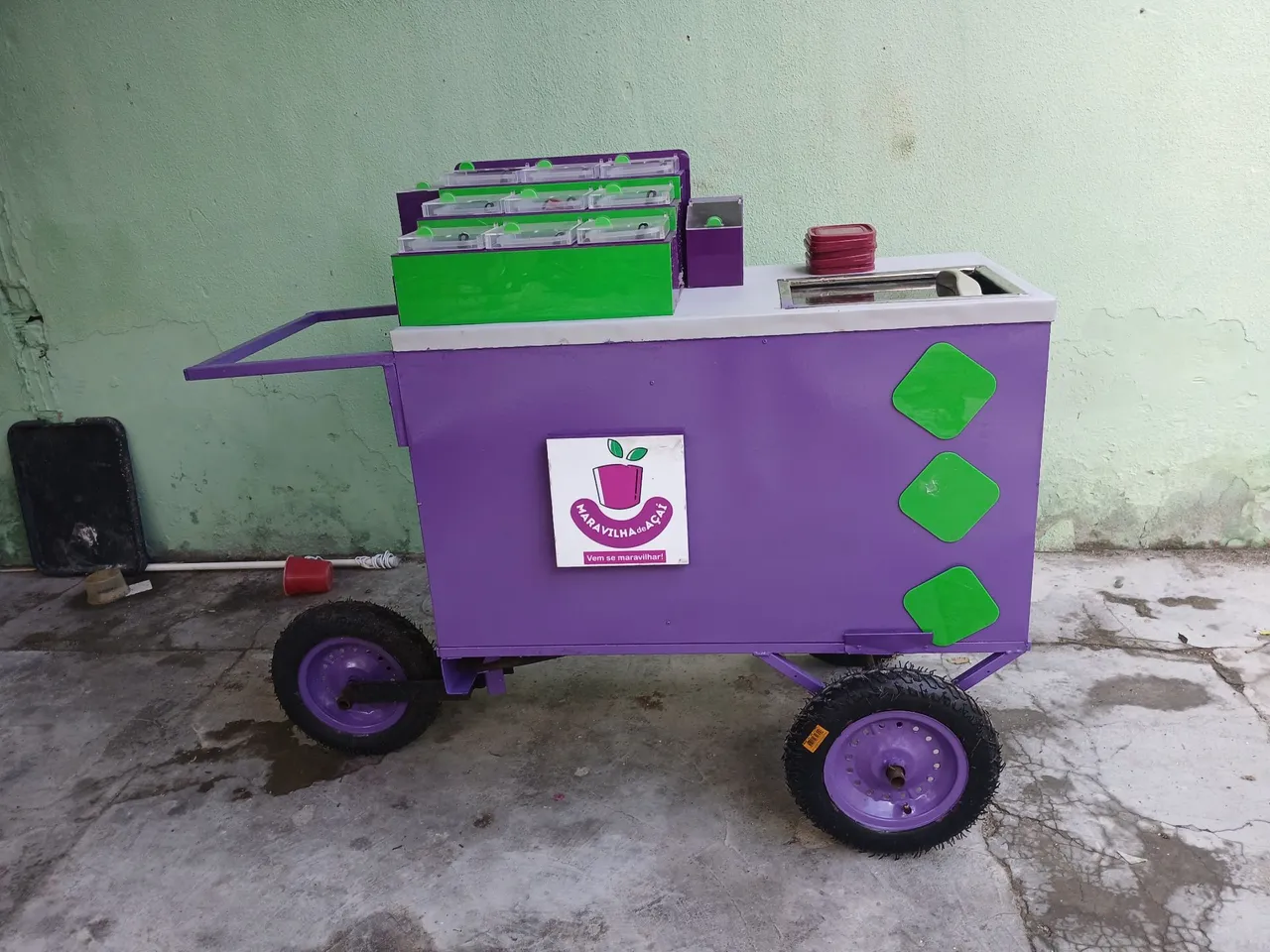 Prepare e venda deliciosos açaís com este carrinho prático e charmoso! Ideal para eventos, praças ou para começar seu próprio negócio. Leve, fácil de transportar e com design atraente.