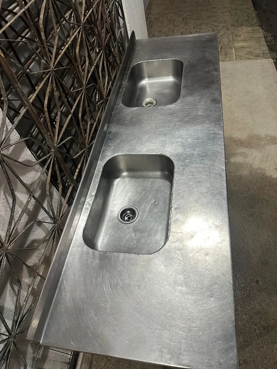 Mesa de pia em aço inoxidável, ideal para cozinhas industriais e restaurantes. Durável, resistente e fácil de limpar. Perfeita para otimizar o espaço e a organização do seu ambiente gastronômico.