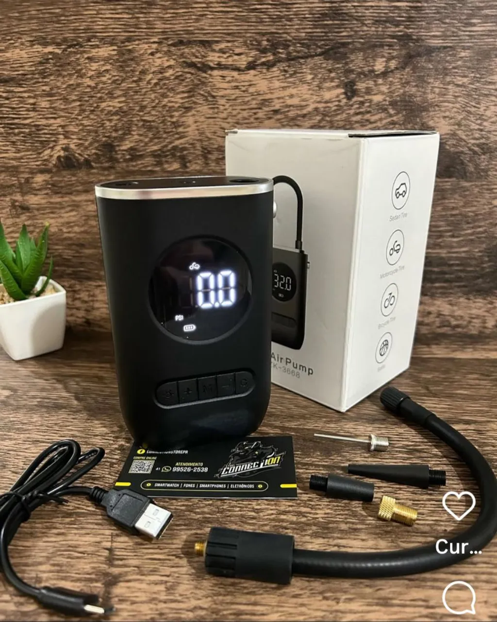 Com o Compressor de Ar Recarregável, você terá a praticidade de calibrar pneus de carros, motos e bicicletas de forma rápida e eficiente. Compacto e fácil de usar, ele é perfeito para ter sempre à mão. Garanta já o seu!