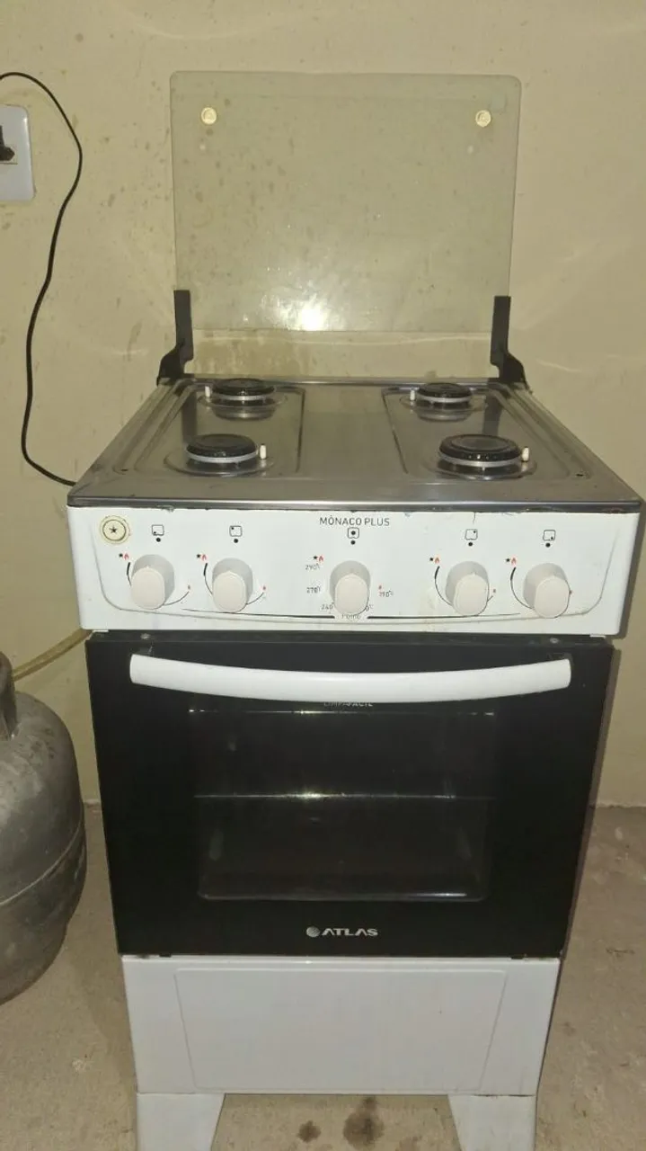 Fogão Atlas 4 bocas Elétrico funcionando 100%, com algumas marcas de uso. Todas bocas e forno ok, bem conservado. Só pegar e usar.