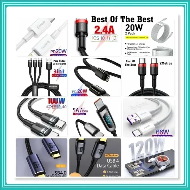 (Baseus Cabos Tipo-C Lightning, Lightning Usb, Micro Usb, Tipo-c Usb Para Iphone, E Android
