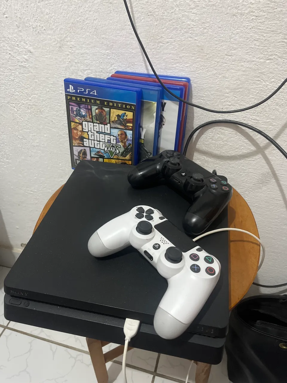 Vendo ps4 slim de 1 tera de memória,controles,mais de 8 jogos e está excelente condição de uso