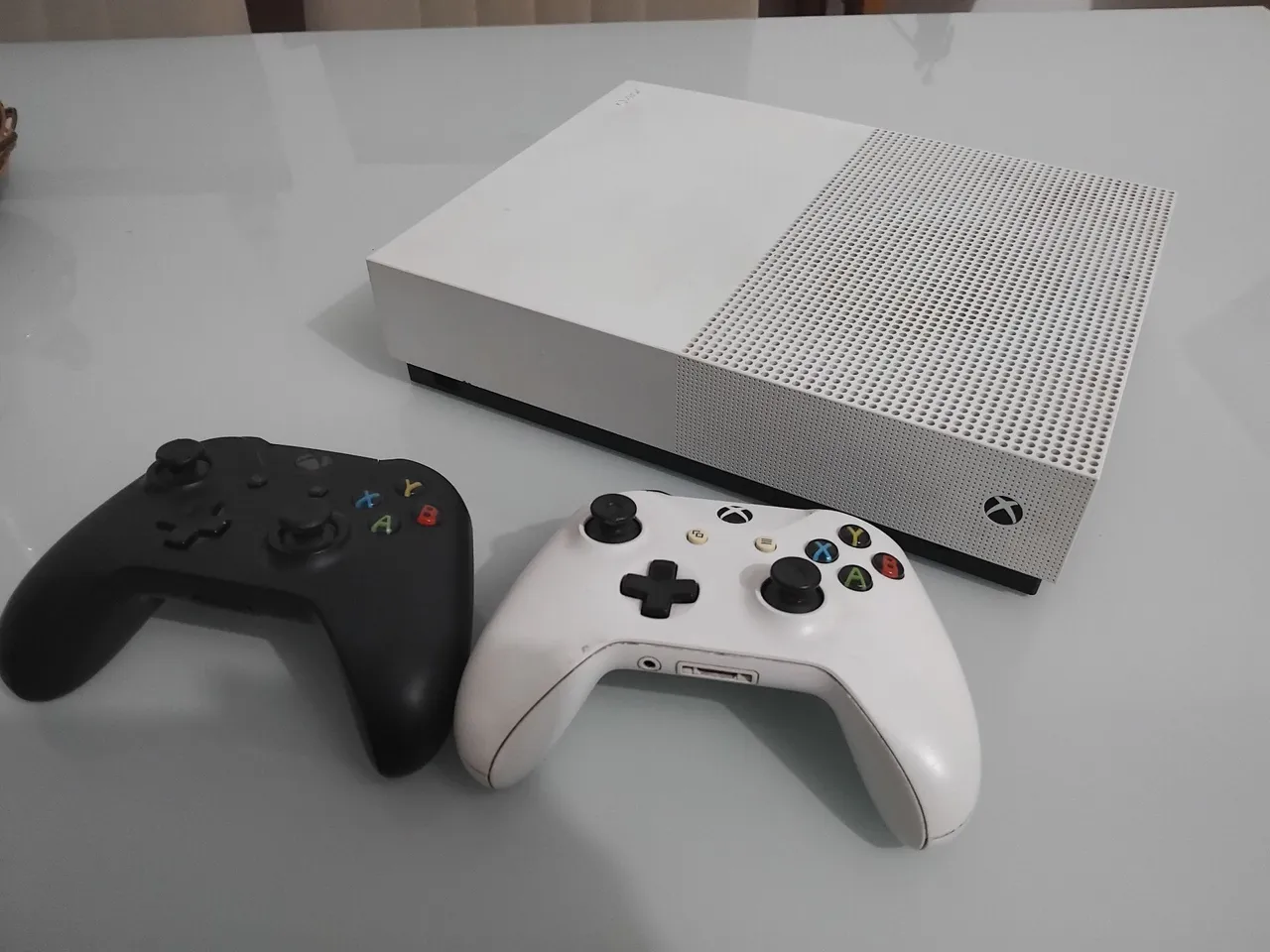 XBOX ONE S. Jogos inclusos e controle.