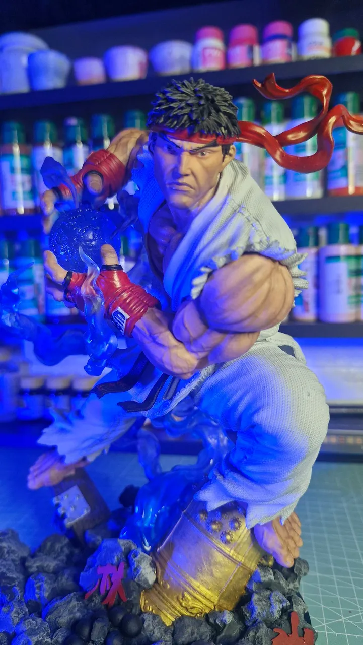 Peça completa na resina com pintura extremamente detalhada, feita à mão e cheia de efeitos. O poder Hadouken foi feita em Resina translúcida com pintura translúcida, para maior realismo.