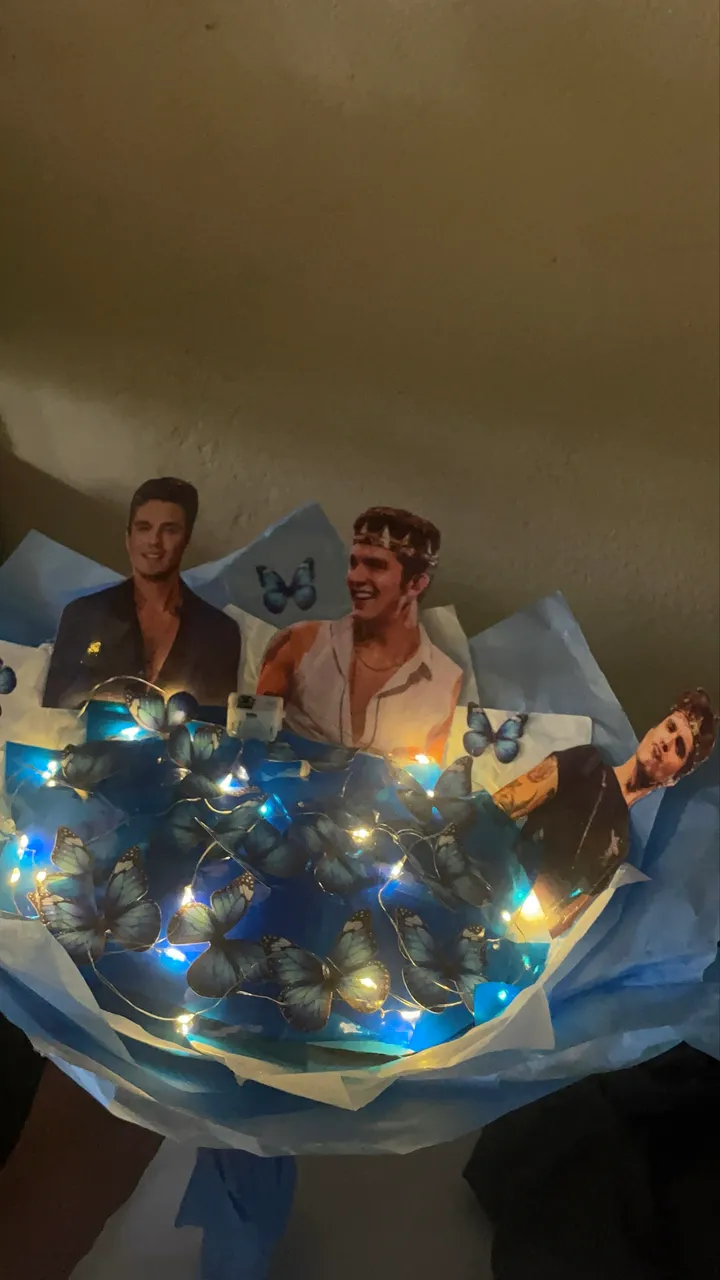 Lindo buquê temático com borboletas e as fotos do Luan Santana! Um presente criativo e inesquecível para os fãs. Garanta já o seu! @mikapresentess_