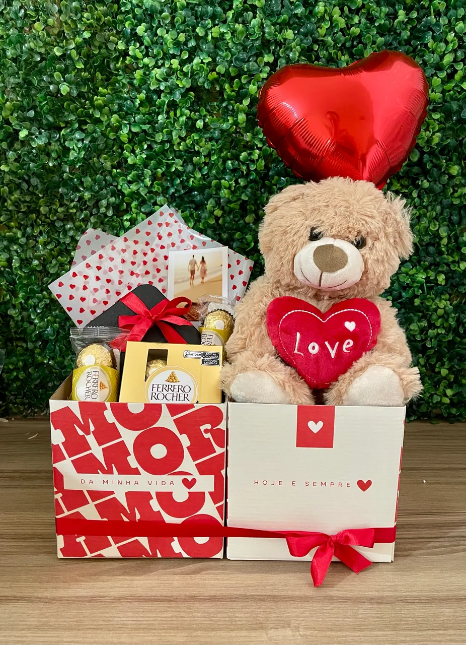 Surpreenda quem você ama com um presente especial! Esta cesta encantadora é perfeita para expressar todo o seu carinho. Ela contém um adorável ursinho de pelúcia, chocolates Ferrero Rocher e um balão em formato de coração. Um presente inesquecível para celebrar o amor!