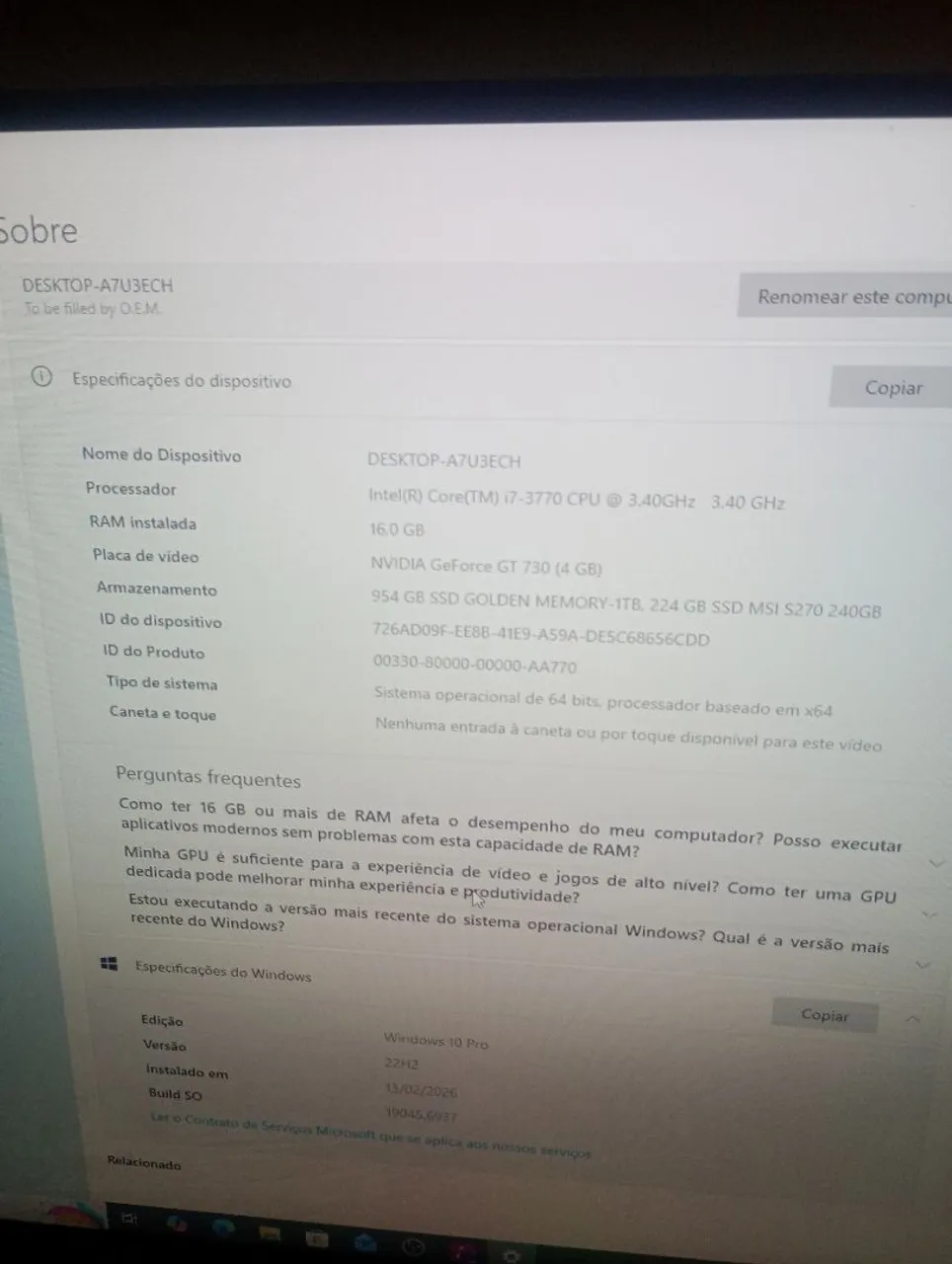 PC Gamer potente com processador Intel Core i7, 16GB de RAM e placa de vídeo NVIDIA GeForce GT 730. Ideal para rodar seus jogos favoritos com bom desempenho e qualidade. Amplo armazenamento com SSD de 1TB e SSD de 240GB para maior velocidade.