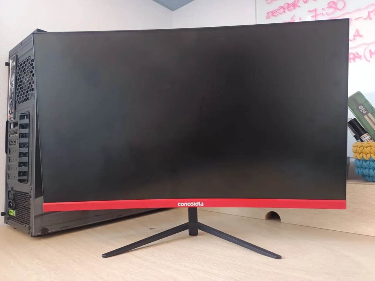 PC 02 - Monitor concórdia 23,8" - curvo - Gabinete bluecase gamer - BG-015 USB 3.0 - Blaca mãe Asrock - B450M - Processador - AMD Ryzen 5 sem placa integrada - Memória Ram - Hiksemi 2x16Gb DDR4 3600 - Menos de 1 ano de uso - Placa de Vídeo Gigabyte AMD Radeon RX 7600 XT Gaming OC, 16GB, GDDR6, FSR, Ray Tracing, GV-R76XTGAMING OC-16GD - SSD ultra M.2 - 512GB - Hiksemi - Fonte Gamemax GS600, 600W, 80 Plus White, PFC Ativo, Black - 5 fãs - Com fluxo de ar pensado para saída superior de ar quente - Acompanhada mouse + teclado (sem fios)