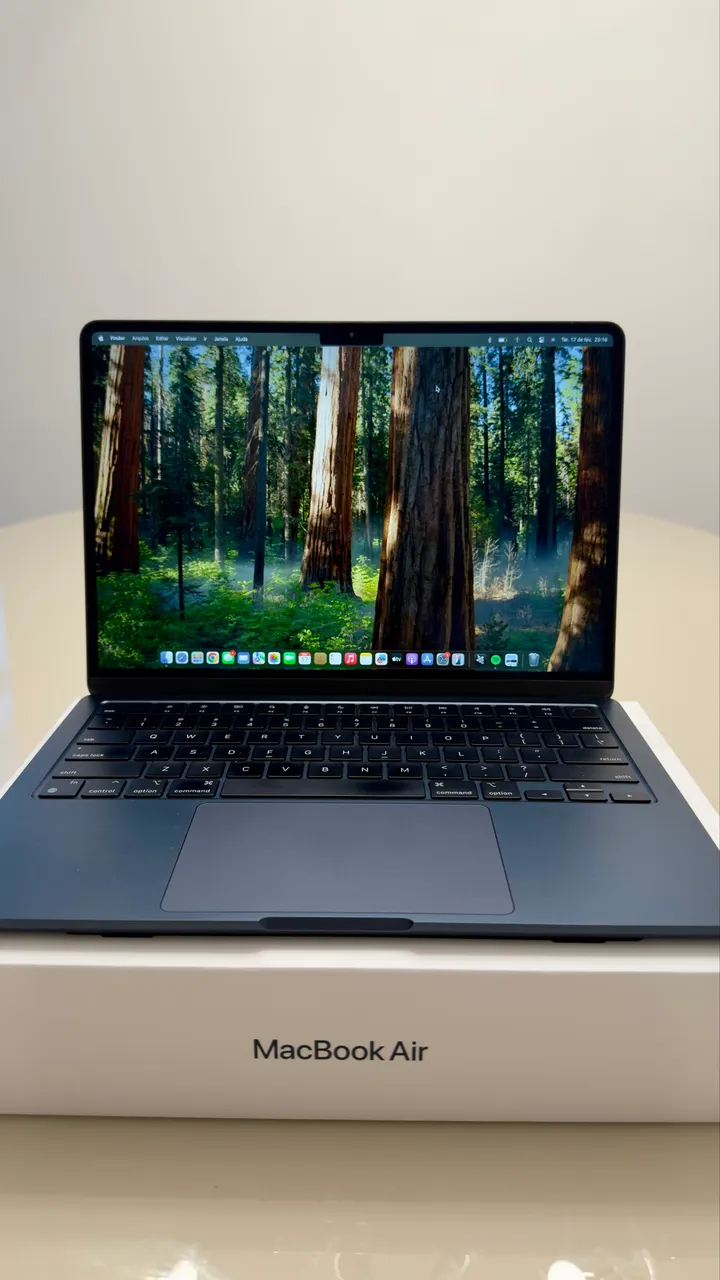 MacBook Air M2 com 512GB de armazenamento, na cor Midnight, em excelente estado de conservação.