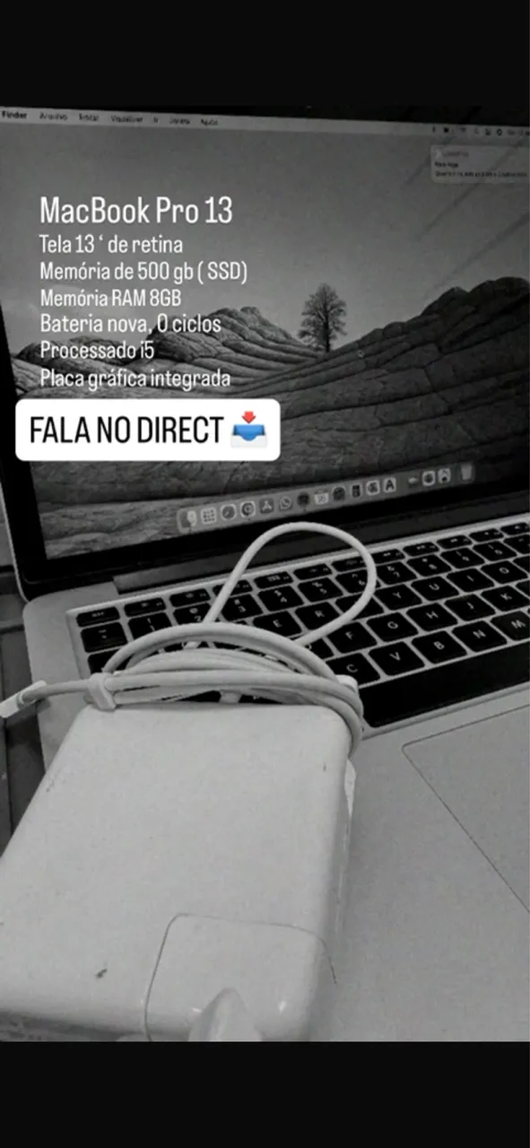 MacBook Pro 13 com tela de retina de 13 polegadas, 500GB de SSD e 8GB de RAM. Desempenho incrível com processador i5 e placa gráfica integrada, ideal para suas tarefas diárias. Bateria nova, com 0 ciclos.