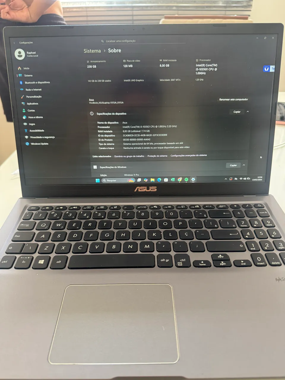 Notebook Asus I5 10 geração 256gb de armazenamento 8gb de ram