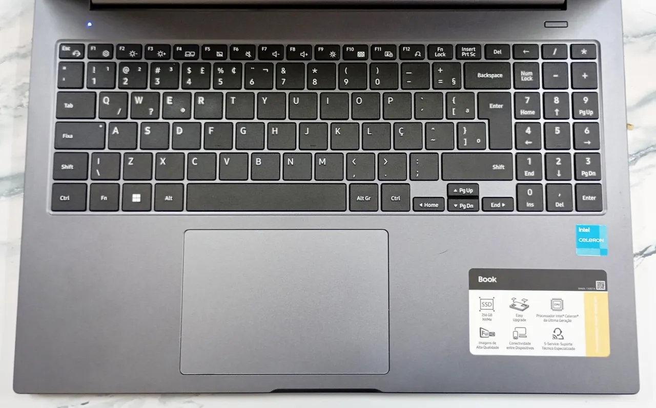 Notebook, equipado com SSD de 256 GB, tela Full HD e processador Intel Celeron. Ideal para tarefas diárias e produtividade.